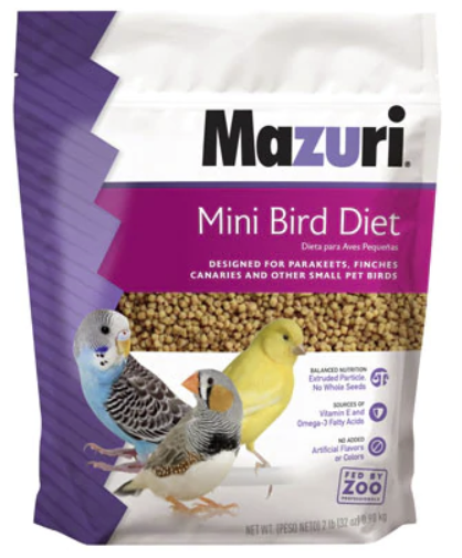 Mazuri® Mini Bird Diet is a complete bird food developed to support the optimal nutrition of parakeets, finches, canaries and other small pet birds.