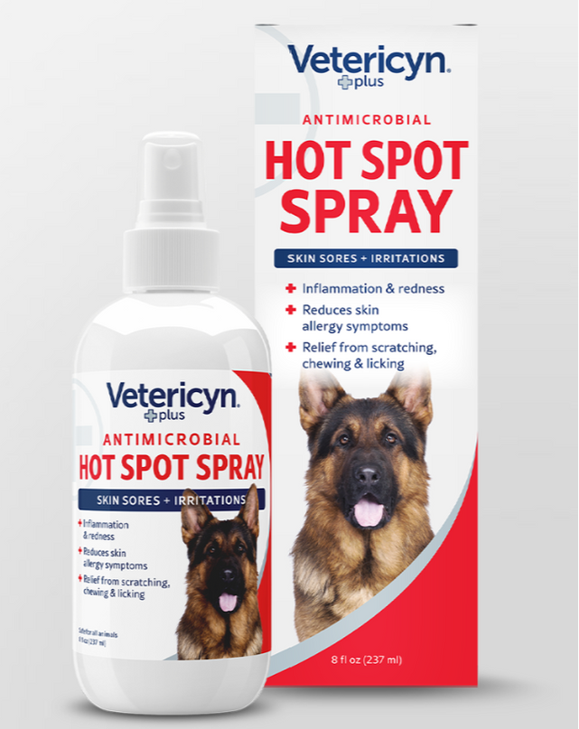 Simply put, hot spots form when your pet itches, scratches or licks themselves excessively in the same area, thus preventing it from healing completely. Vetericyn Plus® Hot Spot Spray cleans and provides relief to itchy, irritated skin and sores, helping to minimize the animal’s discomfort and reduce their need to...